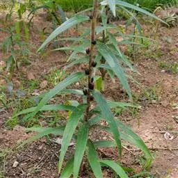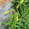 垂花百合种球有两个特征,一是种球较小,株形娇细,是长白山区所有百合品种中株形最娇嫩的品种之一; 二是生长期间雨季易倒伏,要根据其生长特点,采取相应的田间管理措施.春季齐苗后,进行第 1 次中耕除草,宜浅除避免伤到幼苗及种球,7 月中旬,进行第 2 次中耕除草. 结合除草,每 667 m2 施过磷酸钙 15 kg,施 m( N) ∶ m( P) ∶ m( K) 为 15∶ 15∶ 15 的复合肥 25 kg,开沟均匀施入,应避免直接与鳞茎接触,引起腐烂.第 3 次除草后,2 a 生以上苗最好立支架,以避免风雨将苗刮倒. 方法是畦四角立 50 cm 高的支柱,于距地面 40 cm 处四周用铁丝围绕,用绳按栽培的株行距交叉连接编成网状,待垂花百合生长越过网点后,用细绳固定于网上,可避免倒伏.