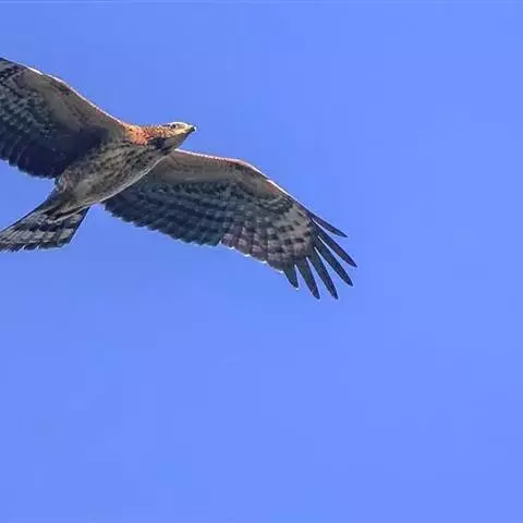 栗鸢:又叫红老鹰,为中型猛禽。体长36-51厘米。虹膜为褐色或红褐色,头、颈、胸和上背白色,…