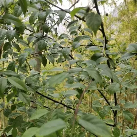 多枝常绿灌木,高可达5米;树皮灰黑色,幼枝灰色或褐色,具纵棱角,密被短柔毛,较老的枝具半月形隆起叶痕和疏的椭圆形或圆形皮孔。 叶生于1-2年生枝上,叶片革质,倒卵形,椭圆形或长圆状椭圆形,长1-3.5厘米,宽5-15毫米,先端圆形,钝或近急尖,基部钝或楔形,边缘具圆齿状锯齿,叶面亮绿色,干时有皱纹,除沿主脉被短柔毛外,余无毛,背面淡绿色,无毛,密生褐色腺点,主脉在叶面平坦或稍凹入,在背面隆起,侧脉3-5对,与网脉均不明显;叶柄长2-3毫米,上面具槽,下面隆起,被短柔毛;托叶钻形,微小。雄花1-7朵排成聚伞花序,单生于当年生枝的鳞片腋肉或下部的叶腋内,或假簇生于二年生枝的叶腋内,总花梗长4-9毫米,二级轴长仅1毫米,花梗长2-3毫米,近基部具1-2枚小苞片,单花花梗长4-8毫米,近中部具小苞片1-2枚;花4基数,白色;花萼盘状,直径约2毫米,无毛,4裂,裂片阔三角形,边缘啮蚀状;花瓣4,阔椭圆形,长约2毫米,基部稍合生;雄蕊短于花瓣,花药椭圆体状,长约0.8毫米;退化子房圆锥形,顶端尖。雌花单花,2或3花组成聚伞花序生于当年生枝的叶腋内;花梗长3.5-6毫米,向顶端稍增粗,具纵棱脊,近中部具1或2枚小苞片;花4基数,花萼直径约3毫米,4裂,裂片圆形;花冠直径约6毫米,花瓣卵形,长 约3毫米,基部合生;退化雄蕊长为花瓣的1/2,不育花药箭头形;子房卵球形,长约2毫米,花柱偶尔明显,柱头盘状,4裂。果球形,直径6-8毫米,成熟后黑色;果梗长4-6毫米;宿存花萼平展,直径约3毫米;宿存柱头厚盘状,小,直径约1毫米,明显4裂;分核4,长圆状椭圆形,长约5毫米,背部宽3-3.5毫米,平滑,具条纹,无沟,内果皮革质。花期5-6月,果期8-10月。