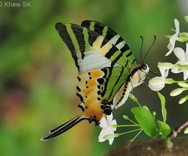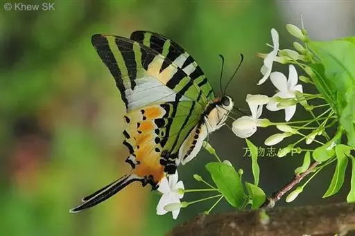 绿凤蝶,英文名:Pathysa antiphates,属凤蝶科、绿凤蝶属下,分布在我国广东、香港等地区。越南,印度,泰国,锡金,马来西亚等也有分布。成虫翅展70—85 mm。后翅的颜色及斑纹基本上都是反面透露过来的,所以看着似显非显,惟独尾突和外缘各翅室的淡黑色条纹全部是正面的本色。翅反面前翅与正面相似。后翅基半部淡黄绿色,端半部淡黄白色;在基半部淡黄绿色区内有3条黑褐色带直到臀角及其附近;中区有1列大小不一的斑,靠前缘1个新月形,紧接其下的1个大而略呈圆形;亚外缘有1列断续的条斑;外缘波状,随波有黑色斑,斑外侧镶灰白边;尾突长,黑褐色。