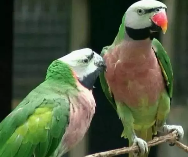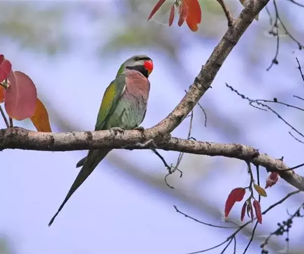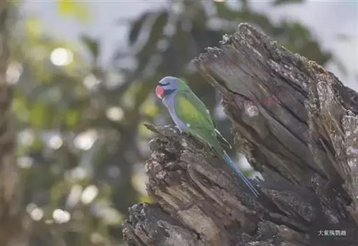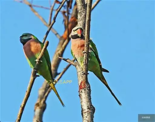 绯胸鹦鹉(学名:Psittacula alexandri):是中型鸟类,共有8个亚种。体长26-36厘米。是典型的攀禽,鸟喙强劲有力,喙钩曲,上颌具有可活动关节,喙基部具有腊膜。肌肉质舌厚。脚短,强大,对趾型,两趾向前两趾向后,适合抓握和攀援生活。头葡萄灰色,眼周沾绿色,前额有一窄的黑带延伸至两眼。上体绿色,颏白色,喉和胸葡萄红色或砖红色。