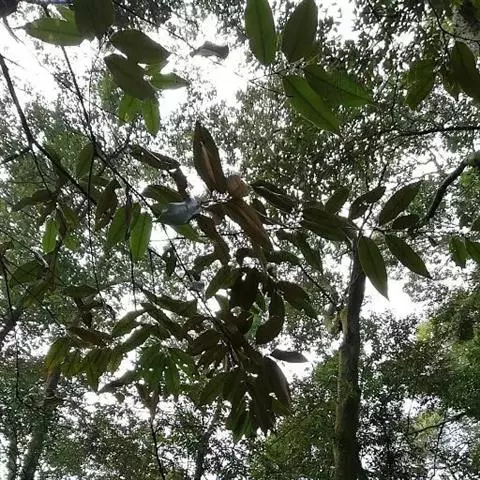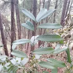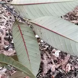 叶厚纸质或近革质,椭圆形,卵形或长圆形,长12-30厘米,宽4-10厘米,很少较窄,顶端短或长渐尖,基部近于圆,或短尖,常一侧略歪斜,全缘或有时在顶部有少数裂齿,中脉在叶面平坦或下半段微凸起,侧脉生边10-15 条,网状直脉尚可见或甚明显,嫩叶两面同色,成长叶背面带苍灰色;叶柄长1.5-3厘米。