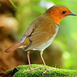 日本歌鸲:体型小似麻雀,但羽毛颜色较为美丽。嘴细长,嘴须不发达;翅短圆,上体草黄褐;雄鸟喉部橙棕色,…