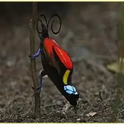 琴鸟(Lyrebirds):雀形目琴鸟科的两种澳大利亚鸟,因求偶炫耀时尾羽展开的形状尤如一张竖琴而得名。鸣声亦悦耳。地栖。体褐色,色似雉鸡。共1属2种4个亚种琴鸟能长到家鸡一般大,颜色为红棕色。雄性的外尾羽在部分展开时呈古典竖琴状,内尾羽则像花边一样。琴鸟的尾羽在秋季时会脱落,春季又会再生。