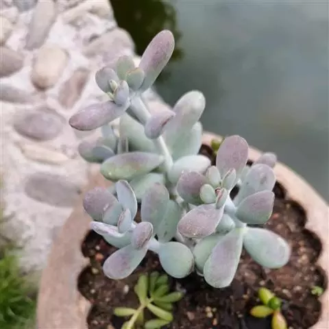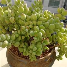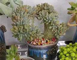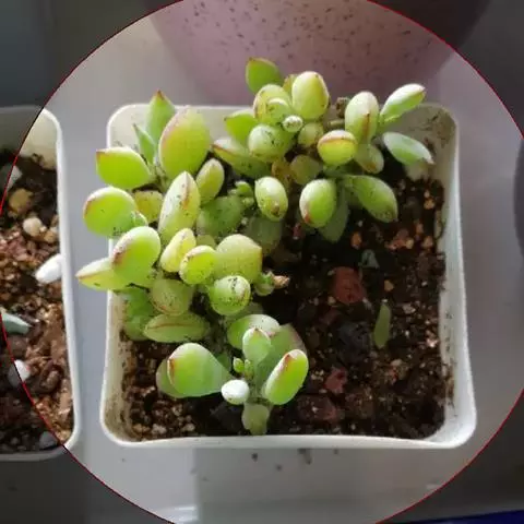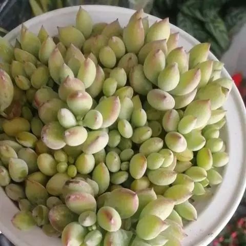 乒乓福娘,植株叶片退化成扁卵状,植株为直立的肉质灌木,能够长高。叶片对生,扁卵型至圆卵形,叶片顶端…