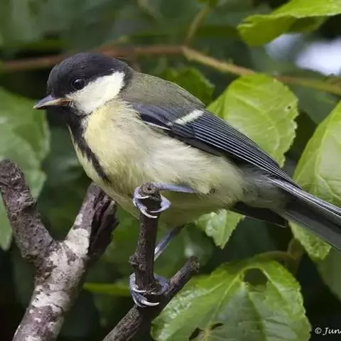 相似种绿背山雀头无羽冠,脸白色;黄腹山雀脸白色,下体无黑色纵带。区别甚明显,野外不难识别。