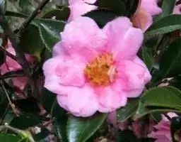 滇山茶:灌木至小乔木,有时高达15米,嫩枝无毛。叶阔椭圆形,上面干后深绿色,发亮,下面深褐色,无毛,…