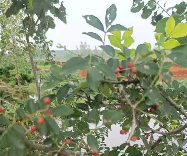 花椒果子 种子处理花椒种壳坚硬,油质多,不透水,发芽比较困难,播种前首先要进行脱脂处理和贮藏。秋播,将种子放在碱水中浸泡,1kg种子用碱面0.025kg,加水以淹没种子为度,除去空庇粒,浸泡2天,搓洗种皮油脂,捞出后用清水冲净即可播种。春播可采用层积沙藏、牛粪拌种、马粪混堆或小窖贮藏等几种方法处理种子。层积沙藏即常规处理方法;牛粪拌种即用新鲜牛粪6份与花椒种子1份,混合均匀,埋入深30厘米的坑内冬藏,次春播种前取出打碎,连同牛粪一起播种;马粪混堆在3月中旬至4月中旬,将水选的花椒种子与3份马粪混放于阳光下堆放,翻动露白后播种;小窖贮藏即挖窖灌水冬藏。