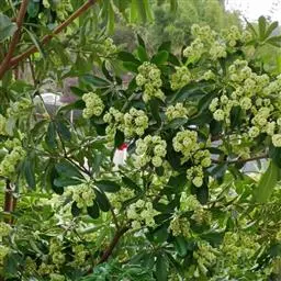 盆架子因为树干挺拔竖直,具有分层效果,很像古代人洗脸用的脸盆架,所以取名叫做盆架子。花黄绿色,具有浓郁刺鼻的气味,种在人多游玩的公园内空气中都是它的味道,多数人不喜欢它的味道,但具有止咳平喘的功效。(概述图片参考资料来源:)