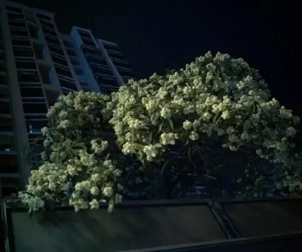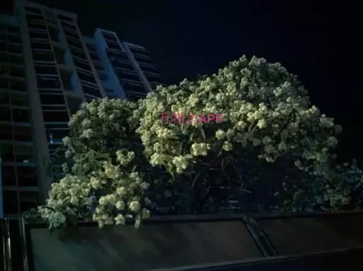 每天经过四川南路,也特别留意了这些花开正艳的盆架子树,的确“花香”太浓,有异味。 盆架子又称:岭刀柄、山苦常、鸭脚常,面盆架子,白叶糖胶。产地海南岛和云南,印度,缅甸,印度尼西亚。每年9至12月,盆架子树会开出大量花朵,这些花朵带有一股特殊的腥臭味。“令人觉得昏眩、胸闷、有点反胃。”一位对盆架子树反映“强烈”的市民称。