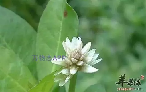 花密生,成具总花梗的头状花序,单生在叶腋,球形,直径8-15毫米;苞片及小苞片白色,顶端渐尖,具1脉;苞片卵形,长2-2.5毫米,小苞片披针形,长2毫米;花被片矩圆形,长5-6毫米,白色,光亮,无毛,顶端急尖,背部侧扁;雄蕊花丝长2.5-3毫米,基部连合成杯状;退化雄蕊矩圆状条形,和雄蕊约等长,顶端裂成窄条;子房倒卵形,具短柄,背面侧扁,顶端圆形。果实未见。花期5-10月。