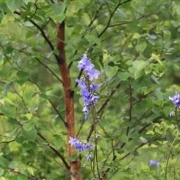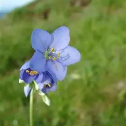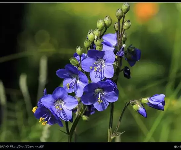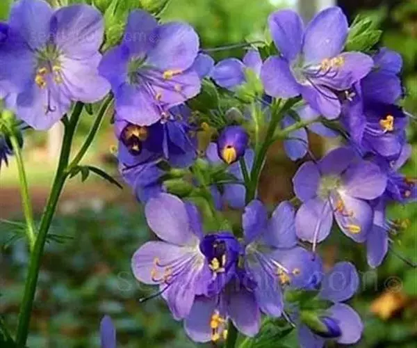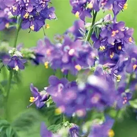 花荵是一种花荵科 、花荵属植物,多年生草本,根匍匐,圆柱状,多纤维状须根。茎直立,高0.5-1米,无毛或被疏柔毛。羽状复叶互生,茎下部叶长可达20多厘米,茎上部叶长7-14厘米,小叶互生,11-21片,长卵形至披针形,顶端锐尖或渐尖,基部近圆形,全缘,两面有疏柔毛或近无毛,无小叶柄;叶柄生下部者长,上部具短叶柄或无柄,与叶轴同被疏柔毛或近无毛。聚伞圆锥花序顶生或上部叶腋生,疏生多花;花梗连同总梗密生短的或疏长腺毛;花萼钟状,被短的或疏长腺毛,裂片长卵形、长圆形或卵状披针形,顶端锐尖或钝头,稀钝圆,与萼筒近相等长;花冠紫蓝色,钟状,裂片倒卵形,顶端圆或偶有渐狭或略尖,边缘有疏或密的缘毛或无缘毛;雄蕊着生于花冠筒基部之上,通常与花冠近等长,花药卵圆形,花丝基部簇生黄白色柔毛;子房球形,柱头稍伸出花冠之外。蒴果卵形。种子褐色,纺锤形,种皮具有膨胀性的粘液细胞,干后膜质似种子有翅。