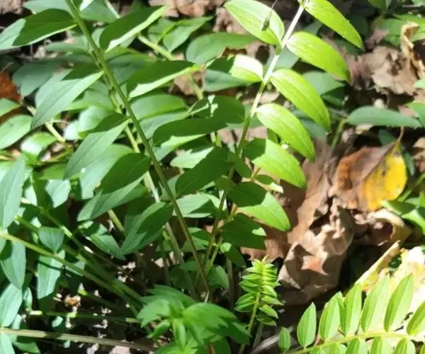多年生草本,根匍匐,圆柱状,多纤维状须根。茎直立,高0.5-1米,无毛或被疏柔毛。羽状复叶互生,茎下部叶长可达20多厘米,茎上部叶长7-14厘米,小叶互生,11-21片,长卵形至披针形,长1.5-4厘米,宽0.5-1.4厘米,顶端锐尖或渐尖,基部近圆形,全缘,两面有疏柔毛或近无毛,无小叶柄;叶柄长1.5-8厘米,生下部者长,上部具短叶柄或无柄,与叶轴同被疏柔毛或近无毛。