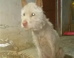 被毛短,长度一致,大约为1.5-2cm,触感平滑。密度随天气变化而变,在炎热的气候里,被毛更加厚密,还会生出底毛、颜色为全白色,只准许眼睛上有色斑,而且色斑的面积不可以超过头部面积的10% 。