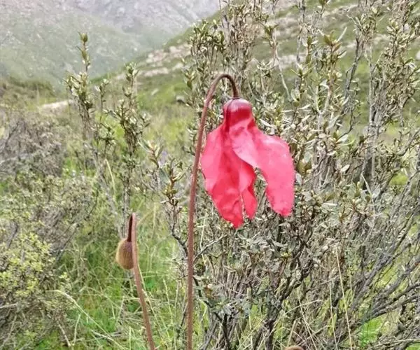 红花绿绒蒿(学名:Meconopsis punicea)为罂粟科绿绒蒿属下的一个种。多年生草本植物,高30-75厘米。产四川西北部、西藏东北部、青海东南部和甘肃西南部,生于海拔2800-4300米的山坡草地。该植物能镇痛,止咳,固涩,抗菌,具有一定的药用价值;花大、艳丽、形态别致。是十分美丽的观赏植物。因过度采集及生境退化,现为国家二级保护野生植物。