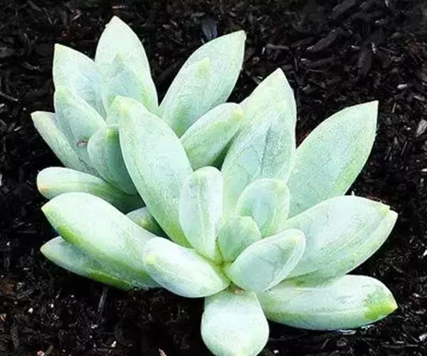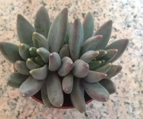 蓝黛莲是一种景天科厚叶草属植物。叶片呈略扁的圆柱形,排列成莲座状;颜色为灰绿色,…