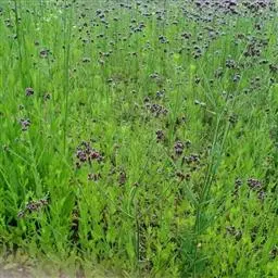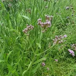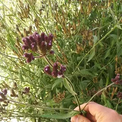 马鞭草(拉丁学名:Verbena officinalis L.),多年生直立草本植物,高可达120厘米,基部木质化,单叶对生,卵形至长卵形,两面被硬毛,下面脉上的毛尤密。顶生或腋生的穗状花序,花蓝紫色,无柄,花萼膜质,筒状,花冠微呈二唇形,花丝极短;子房无毛,果包藏于萼内,小坚果。花果期6-10月。