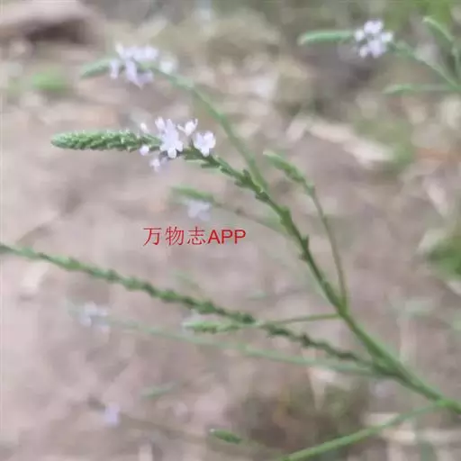 马鞭草 多年生草本,高30-120厘米。茎四方形,近基部可为圆形,节和棱上有硬毛。叶片卵圆形至倒卵形或长圆状披针形,长2-8厘米,宽1-5厘米,基生叶的边缘通常有粗锯齿和缺刻,茎生叶多数3深裂,裂片边缘有不整齐锯齿,两面均有硬毛,背面脉上尤多。 穗状花序顶生和腋生,细弱, 结果时长达25百米花小,无柄,最初密集,结果时疏离;苞片稍短于花萼,具硬毛;花萼长约2毫米,有硬毛,有5脉,脉间凹穴处质薄而色淡;花冠淡紫至蓝色,长4-8毫米,外面有微毛,裂片5;雄蕊4,着生于花冠管的中部,花丝短;子房无毛。果长圆形,长约2毫米,外果皮薄,成熟时4瓣裂。花期6-8月,果期7-10月。