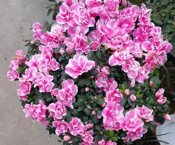 主要特性:植株低矮、枝条细软,无序发枝、横枝多。叶卵形,叶片薄、毛少、嫩绿色、有光泽。花蕾生枝端3-4个,每蕾有花1-3朵,多时4-5朵,开花繁密,真是“不见枝叶只见花”。花冠漏斗状,小型,口径2-4厘米,筒长2-3厘米,多数花萼演变成花冠、形成内外2套,称为双套、夹套。花色多有红、紫、白、粉白、嫩黄、白绿、镶边、洒锦等。有雄蕊5枚,也有雄蕊瓣化成高度重瓣花的。花期比毛鹃略早几天。7-8月老叶凋落,同时花芽形成。不耐强光,可露地种植,萌发力强,极耐修剪,花、枝、叶均纤细,是庭院绿化作色块的好材料,同时也是制作造型盆花的理想材料。