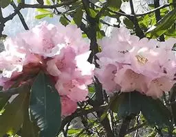 大白杜鹃是杜鹃花科杜鹃花属的常绿灌木,高可达5米。幼枝绿色,无毛;叶厚革质,长圆形或圆状倒卵形,…