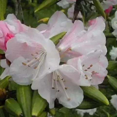 事实上,人们对前面的两种牧珂洛娜图姆杜鹃( R.mucronatum,意译为白花杜鹃)和丽娜日芙丽幕杜鹃(R.linearifolium)是否真的是常绿杜鹃品种存在怀疑。它们在日本已经栽培了三百多年,野生的已无可寻觅了。但是常绿杂交杜鹃是完全是人工的。它们的谱系不再仅仅是还能在野外找到的原始母本了。