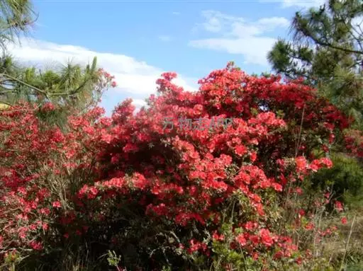 杜鹃花(学名:Rhododendron simsii Planch.):又名映山红、山石榴,为常绿或平常绿灌木。相传,古有杜鹃鸟,日夜哀鸣而咯血,染红遍山的花朵,因而得名。杜鹃花一般春季开花,每簇花2-6朵,花冠漏斗形,有红、淡红、杏红、雪青、白色等,花色繁茂艳丽。生于海拔500-1200(-2500)米的山地疏灌丛或松林下,为中国中南及西南典型的酸性土指示植物。