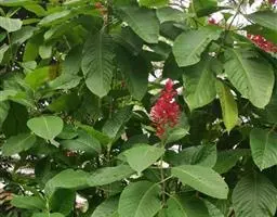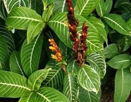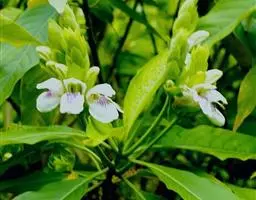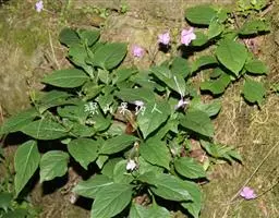 叶对生,叶柄长1至4厘米,叶片呈卵形至椭圆形,长5至11厘米,宽2至5厘米,全缘或具微小圆齿。在长3至4厘米的总状花序上,排列出花蕾绽放至果实形成的不同步骤:基部的花早开及先结果,顶部的花最为晚开,花果并存的状态最常见于12月至翌年2月。花冠呈一侧膨胀的管状,长1.2至1.5厘米,白色,5裂,最下瓣中央有一片紫斑。蒴果长圆形,长1.8至2厘米。种子2至4颗,边缘无毛。