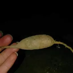 钓具钓点与前同,钓食可用蜘蛛网。网团粘绕鱼钩上,必须注意不露尖。蜘蛛网团粘性好,放入水中不散开。白条(鱼)误认好食物,纷纷拼命抢食来。一条一条被钓住,连钓数条不换饵。