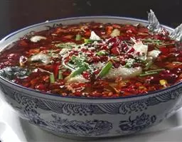 2、制辣味卤汁。①干辣椒剪成节;八角、三奈、桂皮、小茴香、草果、丁香、砂仁、花椒、豆蔻、排萆、香叶等用清水稍泡,沥水;红曲米入锅,加清水1200g熬出色,然后沥去渣,留汁水待用;②净锅上火,放入精炼油烧至三成热,下入干辣椒节、香辛料及剩余的姜块、葱结稍炒,掺入鲜汤及红曲米水,调入精盐、味精烧开后,改用小火熬2小时,至溢出辣味、香味后,即成辣味卤汁。