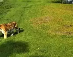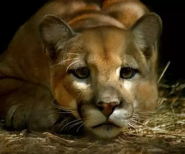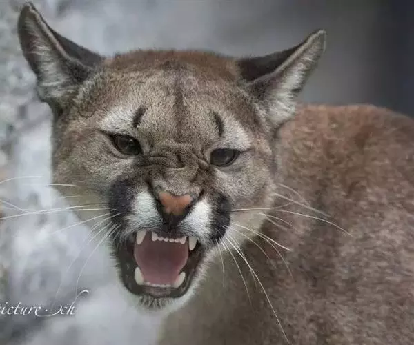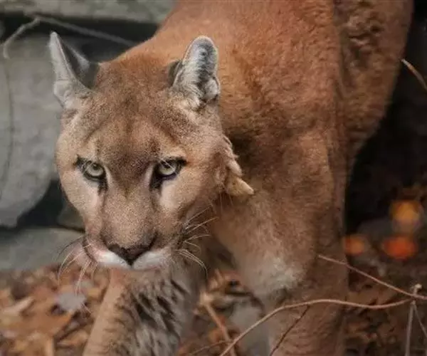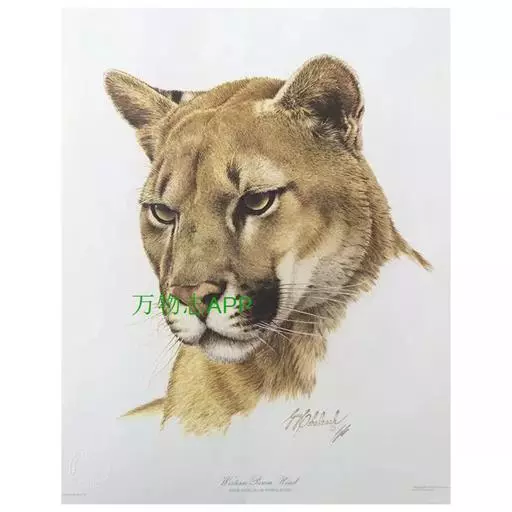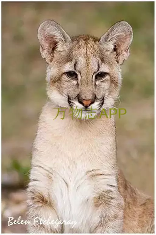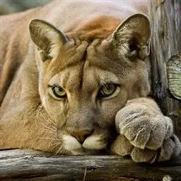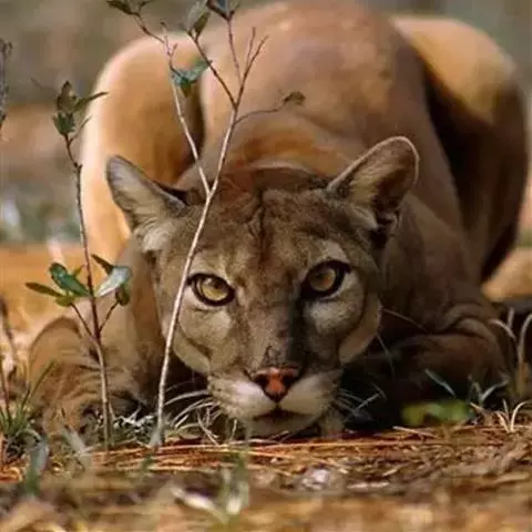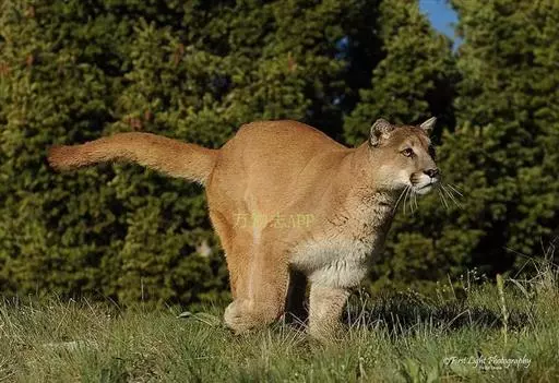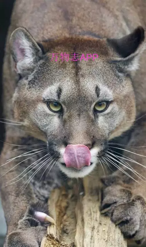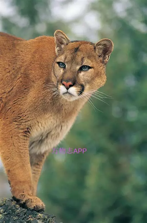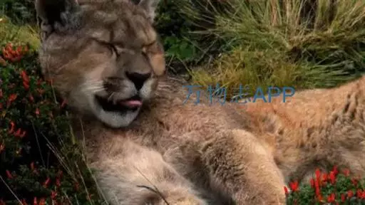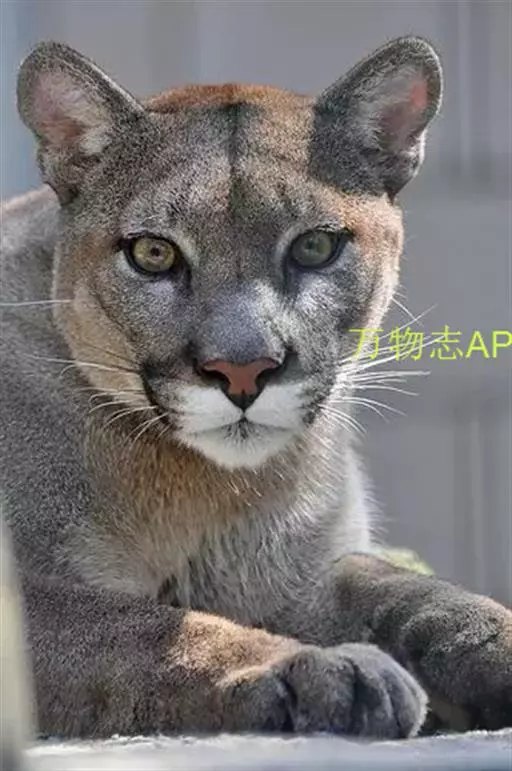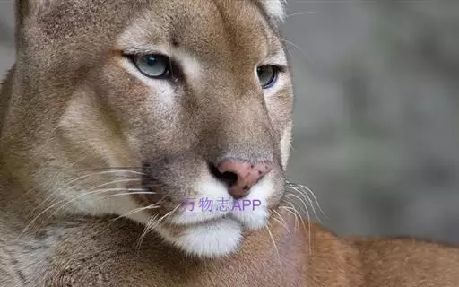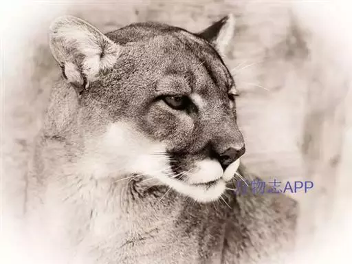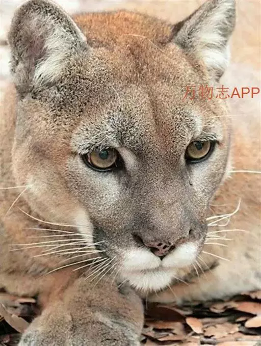 美洲狮(学名:Puma concolor):又称美洲金猫,大小和花豹相仿,但外观上没有花纹且头骨较小。体长130-200厘米,尾长约100厘米,肩高55-80厘米,体重35-100千克,为猫亚科中最大者。雄性比雌性大近1倍。躯体均匀,四肢中长,趾行性。头大而圆,吻部较短,视、听、嗅觉均很发达。犬齿及裂齿极发达;上裂齿具三齿尖,下裂齿具2齿尖;臼齿较退化,齿冠直径小于外侧门齿高度。皮毛柔软,全身为单一的灰色、红棕色或红色。前足5趾,后足4趾;爪锋利,可伸缩。尾较发达。