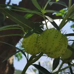 牛角瓜 W. T. Aiton)是夹竹桃科、牛角瓜属直立灌木,高达3米,全株具乳汁;茎黄白色,枝粗壮,…