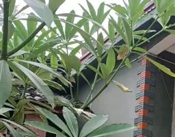 唐棉(Asclepias fruticosa L.),株形直立,全株具白色乳汁;叶:线形似柳叶,色浓绿,背面淡绿色,对生;花:繖形花序,腋生,乳白色下垂状,花期秋至隔年春季。