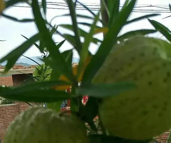 直立灌木,株高 80~150 公分,具多数分枝,具乳汁;枝条细长,直立或斜上升,嫩枝绿色,老枝灰白色,具细柔毛。叶对生,披针形或线状披针形,长 10~13 公分,宽 1~2 公分,先端渐尖或锐尖,基部钝而延伸至叶柄,纸质,全缘,表面呈有光泽的绿色,背面淡绿色;表里两面皆光滑无毛;中肋于表面略凹下而于背面显著隆起,侧脉不明显;叶柄长 0.5~0.9 公分,光滑无毛。花多数,白色,无香味,开放时径 0.9~1.1 公分,呈繖形状聚繖花序;花序抽自于对生叶之叶柄间,长 2~4 公分,略带柔毛;花柄细长,长 1.2~2 公分,有柔毛;花萼深 5 裂,裂片披针形,长 0.5~0.6 公分,先端渐尖,有毛茸;花冠几从基部便 5 裂;裂片卵状长椭圆形,反卷,长 0.7~0.8 公分,宽约 0.4 公分,先端钝,表里两面皆光滑无毛,毛缘;雄蕊柱长约 0.4 公分;副冠鳞片 5 枚,卵形白色,长 0.2~0.4 公分,先端钝。秋至春季开花。果实为蓇葖果,卵形或圆卵形,长 5~8 公分,径 3~6 公分,如膨胀的汽球,中空没有果肉,内藏多数种子,成熟时为绿色,密布刚毛或棘刺,也散生毛茸;成熟后后开裂,种子圆卵形,长 0.3~0.4 公分,无丛毛,成熟时带黑色,种子具白色绒毛可飞散,春至秋季结果。