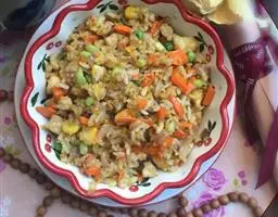 什锦炒饭是一道色香味俱全的名点,以江苏扬州的炒饭最知名。虾仁去泥肠洗净,加料酒、胡椒粉、淀粉上浆。…