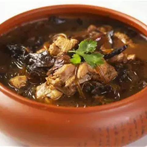小鸡炖蘑菇是一道东北炖菜。通常是用干蘑菇、鸡肉和粉条一同炖制而成。榛蘑可以衬托出鸡肉的鲜香,粉条滑…