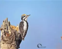 三趾啄木鸟,是啄木鸟科、啄木鸟属的小型鸟类,体长20-23厘米,雄鸟头顶金黄色,雌鸟黑色而具白色斑点。…