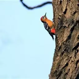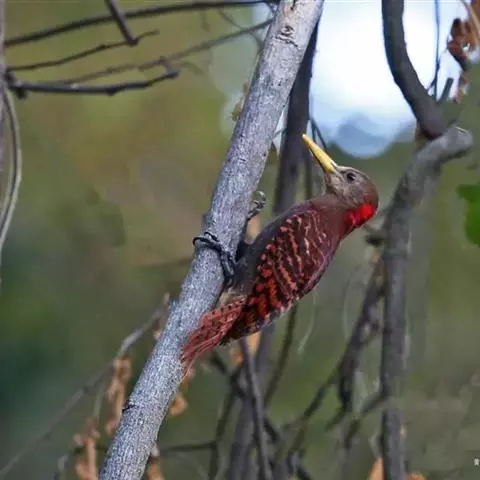 棕腹啄木鸟为啄木鸟科,啄木鸟属是中等体型的鸟类,体长约20厘米。头顶部具红色斑带。脚强健,有趾4个,…