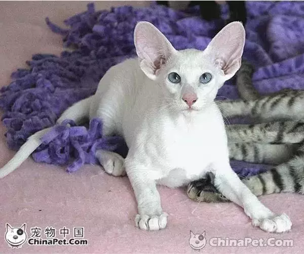 大耳朵的东方短毛猫,它的诞生似乎是个意外。当初为了制造纯白暹罗猫,便以白猫与暹罗猫配种, 但后代却显现出各色的遗传基因,诞生了多彩多姿的东方短毛猫。除了纯白色,另有红色、棕色、巧克力色的斑纹或色块组合出现,而纯黑乌亮的黑猫,在东方特别称为「乌木」。 东方短毛猫偶尔也会生出暹罗猫来,但在血统证明上则不被承认,不仅修长优雅,走起路来的姿态雍容高贵,非常有教养的样子这种猫继承了暹罗猫的体形和短毛猫的毛色,被称为外国白,同时产生的其他颜色如紫色,就称为外国紫。在美国,东方短毛猫的毛色已发展到验阶段灼毛色则更多,东方短毛猫在世界奠定了重要地位。