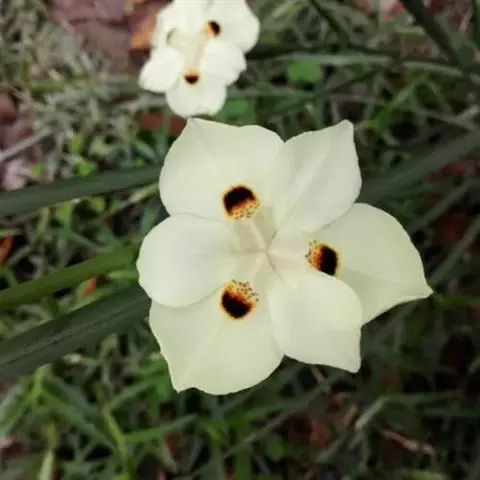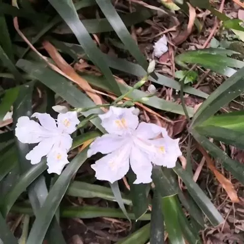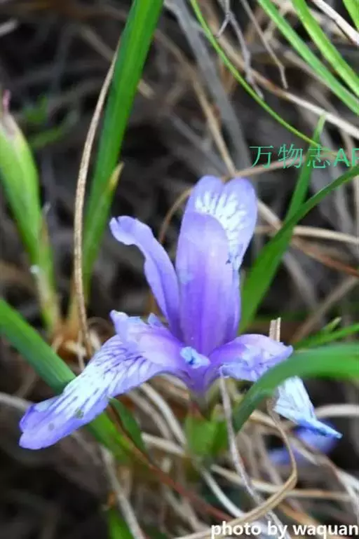 双色野鸢尾为多年生草本植物,叶子呈剑状淡绿色。…