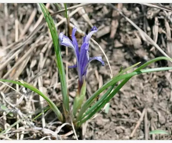 矮紫苞鸢尾(Iris ruthenica var. nana)是紫苞鸢尾的一个变种,又名紫石蒲。多年生草本,根状茎斜伸,二歧分枝,叶条形,灰绿色,长8-15厘米,宽1.5-3毫米,花淡蓝色或蓝紫色,子房狭卵形,柱状,长约4毫米,花期4-5月,果期6-7月。矮紫苞鸢尾产于我国大部分地区,生于向阳砂质地或山坡草地。矮紫苞鸢尾,栽培供观赏,是常见的园林观赏花卉。