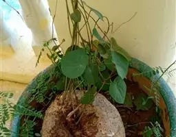 铁藤,又名海南轮环藤《海南植物志》。木质大藤本,长达10m以上。小枝有纵纹,被短硬毛。叶螺旋状着生;叶柄长3-6cm,被毛;叶片阔心形或三角状阔卵形,长6-18cm,宽5.5-15cm,先端渐尖或短渐尖,基部心形或近截平,全缘,上面光亮无毛,下面被柔毛或硬毛,掌状脉5-7条,连同网脉在背面凸起。花极小,单性异株;雄花花萼合生成坛状,高1-2mm;花瓣4,分离,长圆形,聚药雄蕊盾状;雌花萼片2,深兜状;花瓣2,微小。核果无毛,近球形,内果皮骨质,长约4mm,背部2侧各具3行小瘤状凸起。