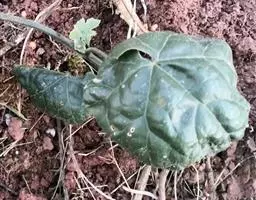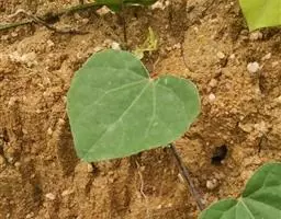 根圆柱形,稍扭曲,直径0.6-1.5cm。表面浅棕色,有纵向纹理和支根痕,弯曲处有横裂纹。质稍硬,断面灰黄色。气微,味苦。叶破碎,完整的叶阔心形,长6-18cm,先端渐尖,基部浅心形,全缘。表面黄绿色,下表面被毛茸,掌状脉5-7条较明显。质脆。气微,味苦。