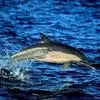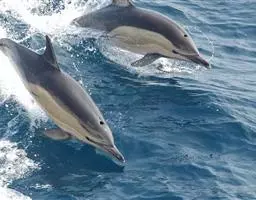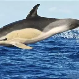 真海豚,身体细而流线型。体色十分复杂而独特,通常十字交叉型,黄褐色在前灰色在后,背面黑色向下延伸,…