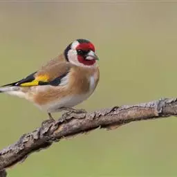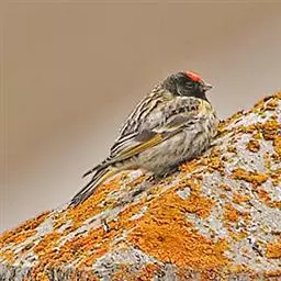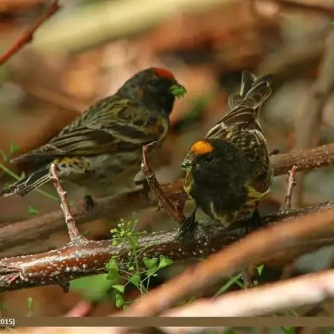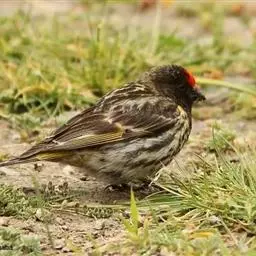 红额金翅雀:共有14个亚种。小型鸟类,体长12-14厘米。额、脸颊和颏朱红色,眼先和眼周黑色,在淡…