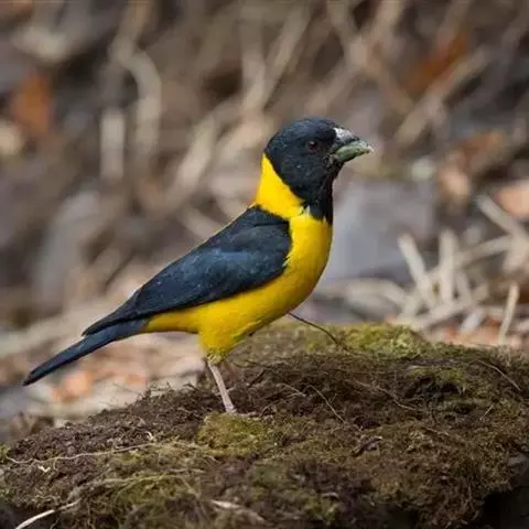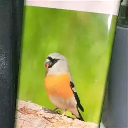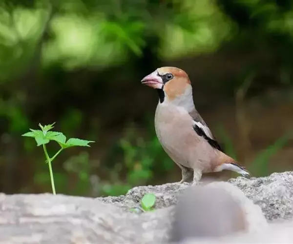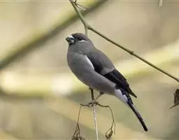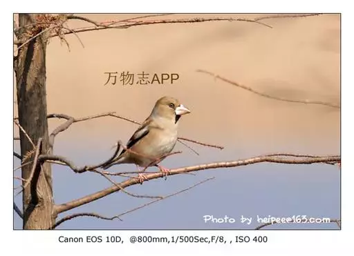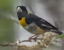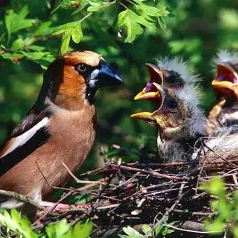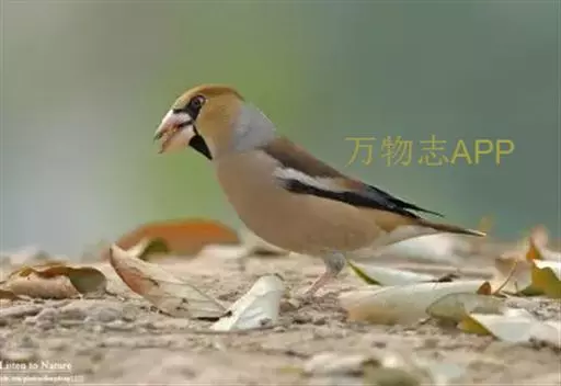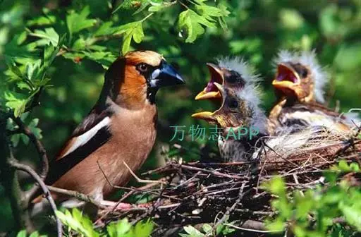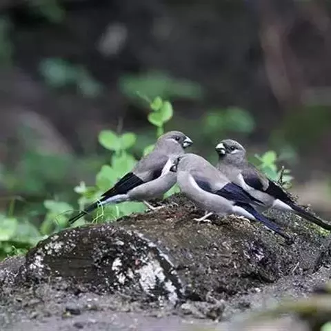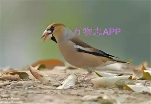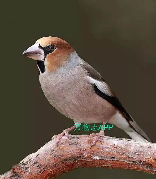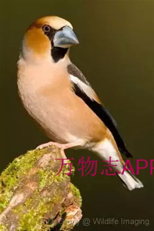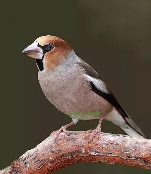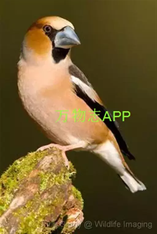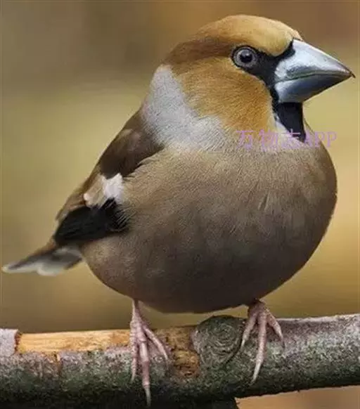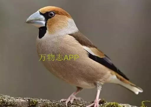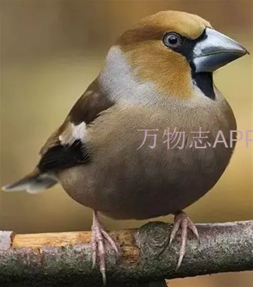锡嘴雀(学名:Coccothraustes coccothraustes):全长184厘米,头顶棕褐,头侧及腰和尾上覆羽等较淡;后颈灰色,翕和下背微褐;翅上的内侧覆羽白,形成宽阔白色带斑;外侧覆羽及飞羽黑色,后者先端具紫色和蓝绿色光辉,内翈具白色斑;尾羽大都黑褐色,先端白色;嘴基周围及眼先黑,至喉则形成大形黑斑;下体余部淡黄褐,至下腹及尾下覆羽转白。雌鸟羽色较雄者暗淡,头顶褐灰。