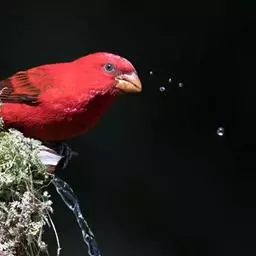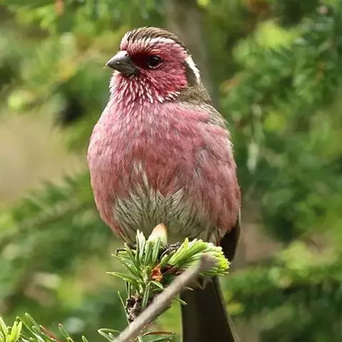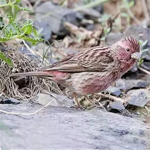 酒红朱雀小型鸟类,体长13~15厘米。雄鸟通体深红色,头部深朱红或棕红色,下背和腰玫瑰红色,…