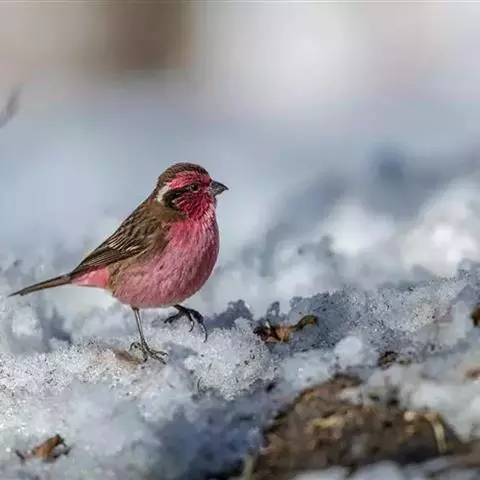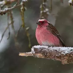 粉红腹岭雀:为燕雀科岭雀属的鸟类。体重25-34克,体长150-182毫米。是一种中等体型的深色岭雀。…