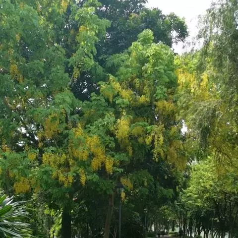 腊肠树:是豆科腊肠树属植物。落叶乔木,高可达15米;枝细长;树皮灰色,老时粗糙,暗褐色。…