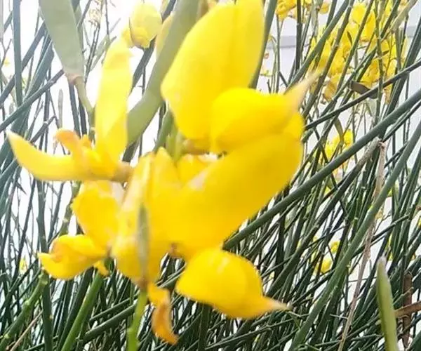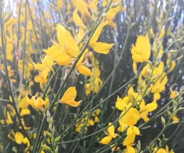 鹰爪豆(学名:Spartium junceum L.),是双子叶植物纲 、豆科、鹰爪豆属常绿灌木,高可达3米;树冠圆球形密集成丛,茎直立,分枝细长,嫩枝绿色,单叶;叶柄短,叶片狭椭圆形至线状披针形,上面无毛,下面稀被贴伏柔毛,叶片早落。花单生叶腋,总状花序,有花5-20朵;苞片卵状披针形,长约4毫米,花梗短,小苞片线形,花萼鞘状焰苞形,膜质,旗瓣阔卵形至圆形,翼瓣椭圆形较短,荚果线形,种子长圆形,4-7月开花。