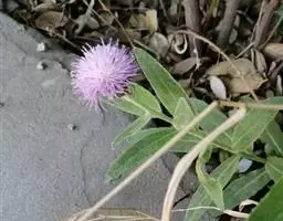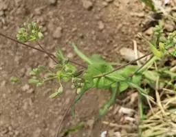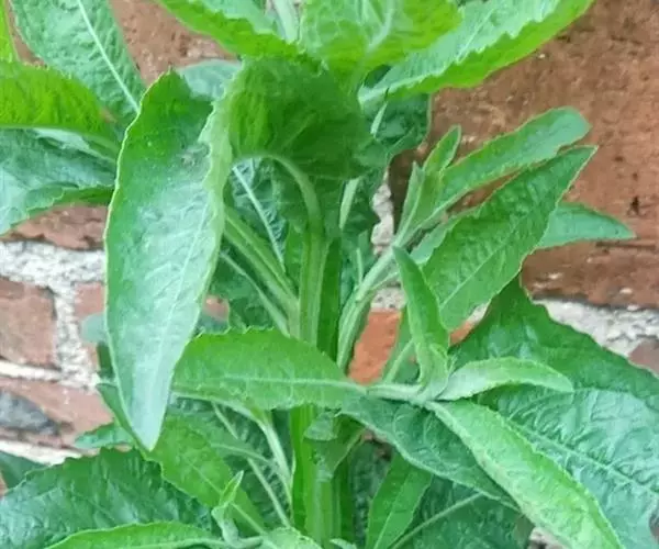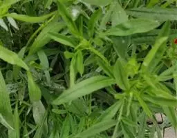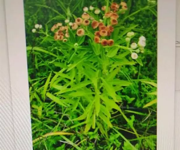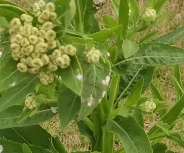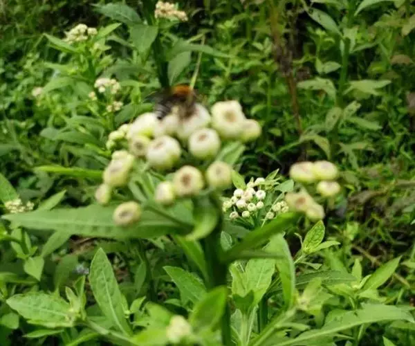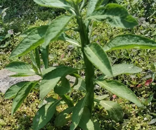 翼茎阔苞菊是一年生草本植物,茎直立,全株具浓厚的芳香气味,且被浓密的绒毛,最明显的特征是自叶基部向下延伸到茎部的翼。